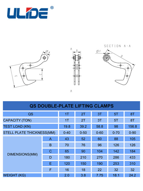★额定载荷指吊钳成对使用,吊点夹角为60°时允许起吊的zuida重量;
