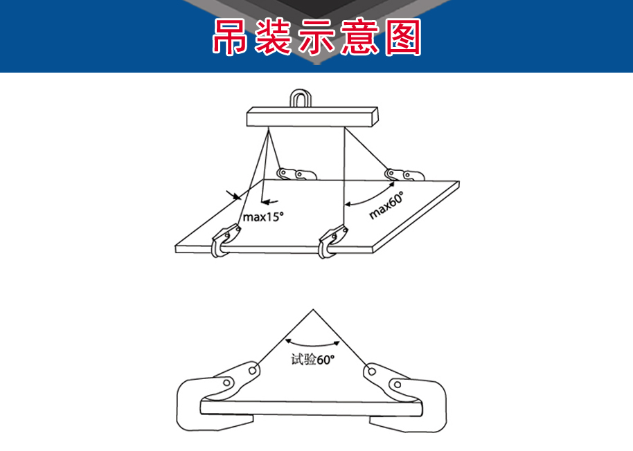 ★以两只试验为额定载荷,吊装作业时2只四只成组使用,钢板较大时