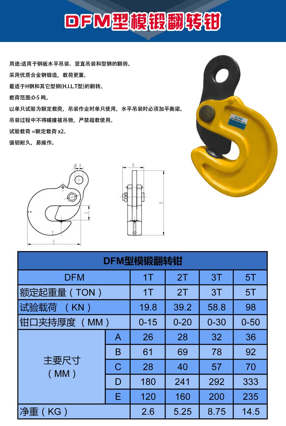 产品名称:DFM模锻起重钳