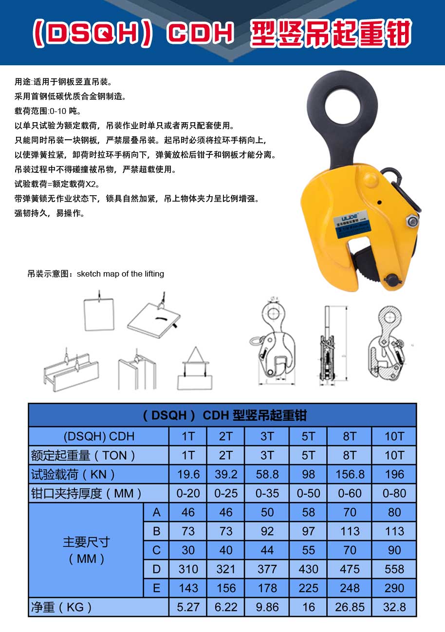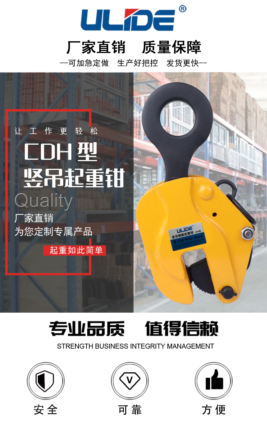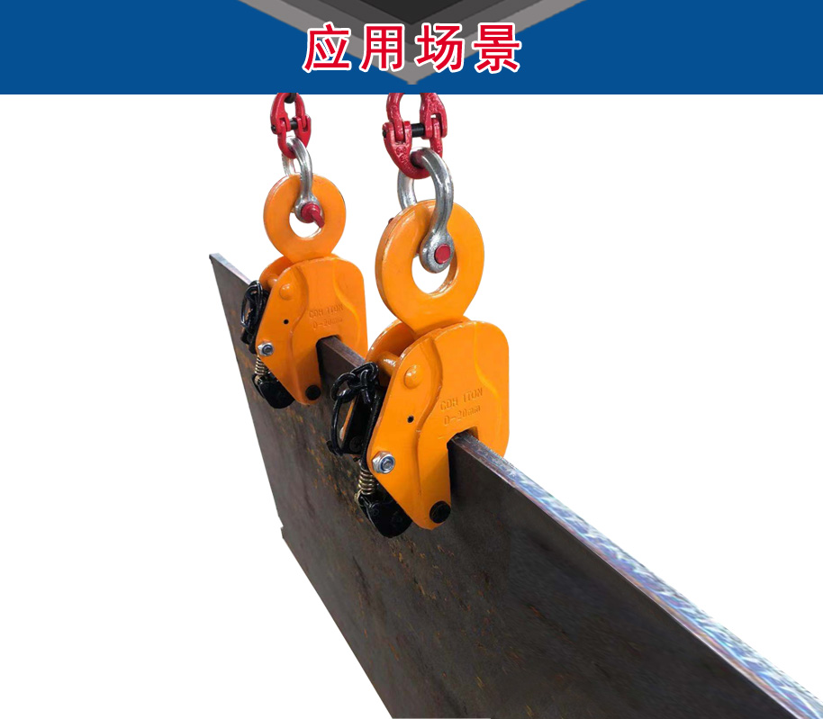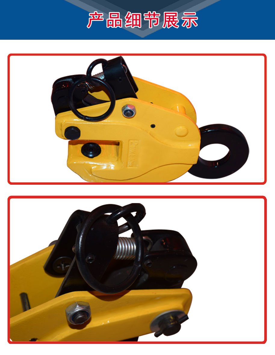 ★带弹簧锁无作业状态下,锁具自然加紧,吊上物体夹力成比例增强;