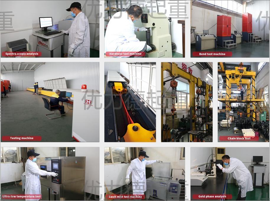 优力德公司生产的高强度起重链条采用德国先进的流水线生产设备,全程严把质量关,采用的是低碳合金钢经过高温蘸火的处理工艺制造而成的,由各种检测设备严格把关保证它的强度符合高强度起重链条的标准.确保产品的抗冲击能力,承载能力,韧性及延伸率.提高它的安全性能及使用寿命.