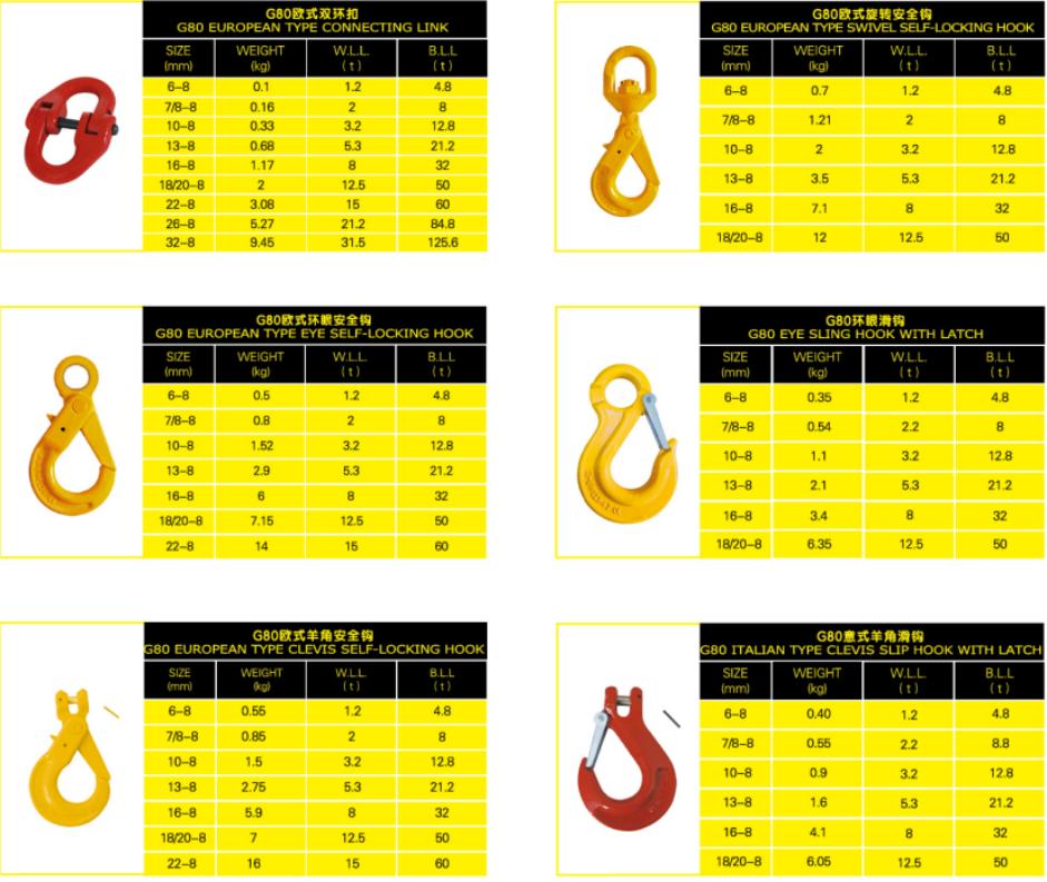 安全系数有4倍、5倍、6倍,甚至8倍(如瑞典GUNNEBO超级卸扣)。其材质,常见的有碳钢、合金钢、不锈钢、高强度钢等。表面处理一般分为镀锌(热镀和电镀)、涂漆、镀达克罗(Dacormet)。