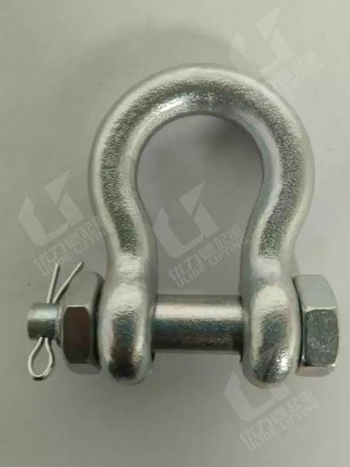 卸扣,索具的一种。国内市场上常用的卸扣,按生产标准一般分为国标、美标、日标三类;其中美标的最常用,因为其体积小承载重量大而被广泛运用。按种类可分为G209(BW),G210(DW),G2130(BX),G2150(DX).按型式可分为弓型(欧米茄形)弓型带母卸扣和D型(U型或直型)D型带母卸扣;按使用场所可分为船用和陆用两种。