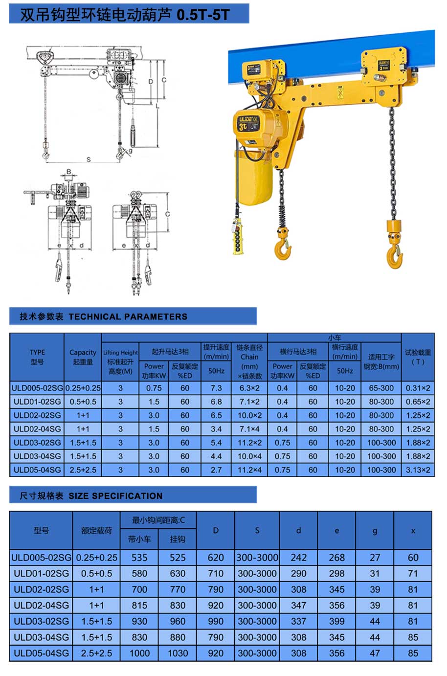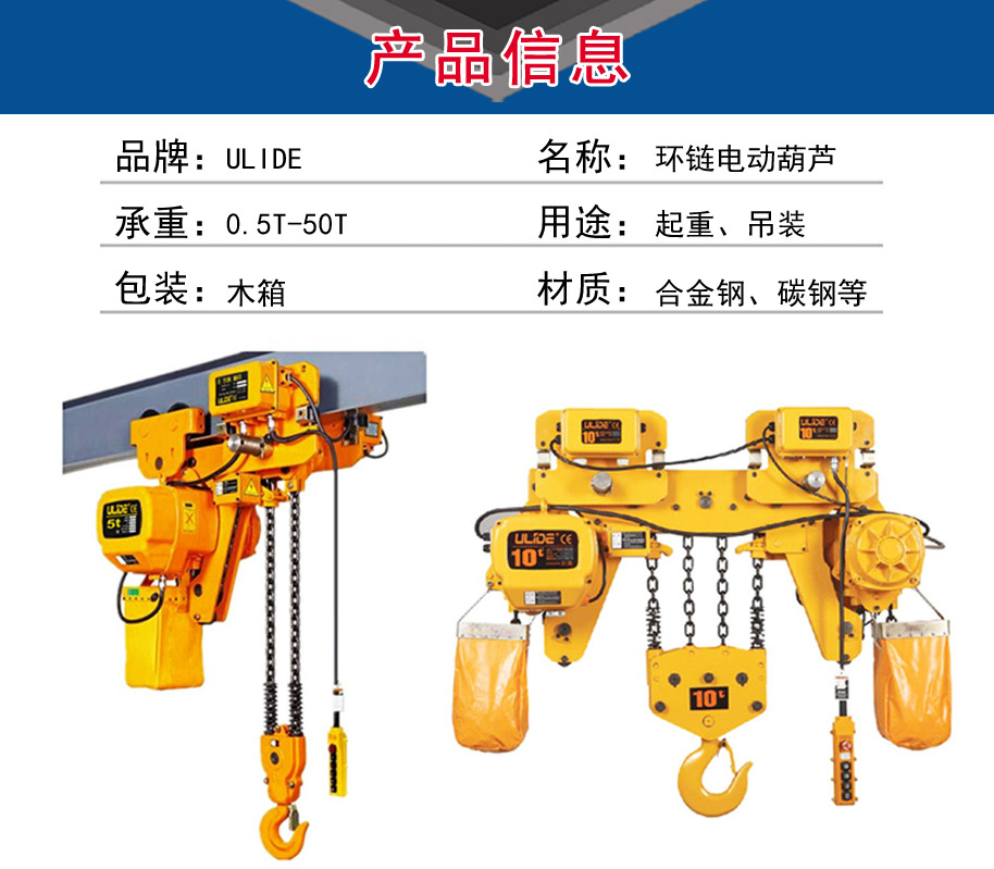 同步双钩环链电动葫芦采用双钩、双链条设计,实现两点起吊,确保安全性,其主要特点为: