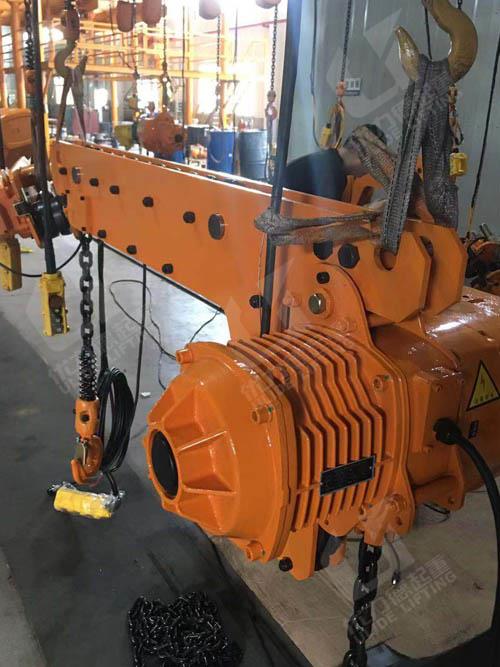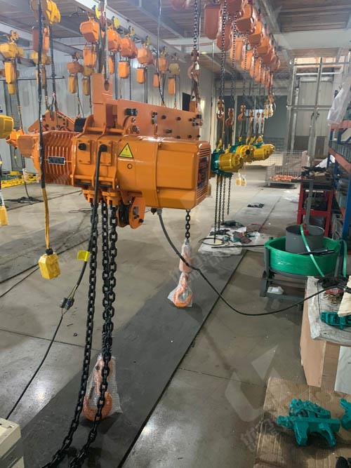 双钩型环链电动葫芦固定式确保两个吊钩同步平稳运行,适用于同时起吊两个物体或起吊大尺寸的物体。