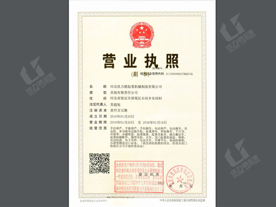 公司名称:河北优力德起重机械制造有限公司